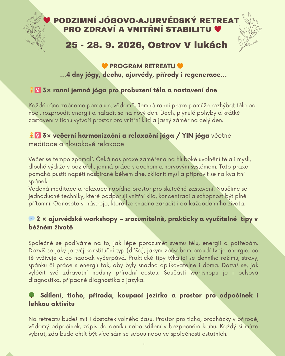 Tento retreat je pozváním k návratu k sobě, k naslouchání tělu, dechu a vlastní energii.
